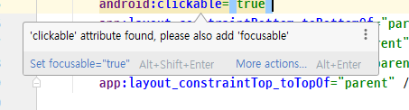 android:focusable="true"을 같이 주는 이유는 Android에서 권장하기 때문입니다.